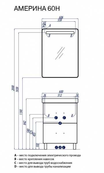 Набор мебели Акватон Америна 60 H, черный - Характеристики