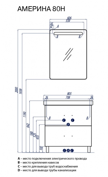 Набор мебели Акватон Америна 80 Н, черный - Характеристики