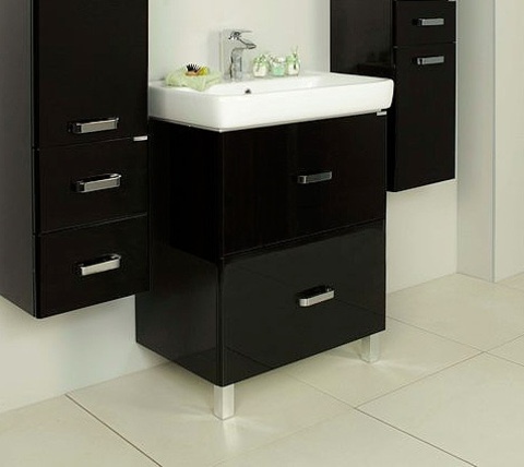 Для хранения всех необходимых ванных принадлежностей предусмотрено два выдвижных ящика и еще один скрытый, внутренний. Раковина изготовлена из керамики – этот материал порадует свой прочностью, практичностью, гигиеничностью, приятным белым цветом и долгим сроком службы.