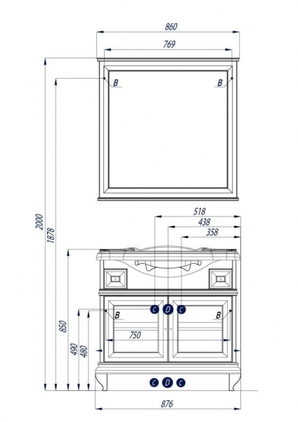 | Тумба-умывальник "Беатриче 105": | 107 см х 81 см х 36 см |