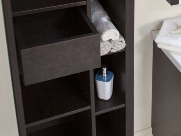 Набор мебели отличает продуманный универсальный дизайн. Она имеет практичную конструкцию моделей – это дверцы с доводчиками и структурированное внутреннее пространство для хранения ванных принадлежностей, которые ранее загромождали собой комнату.