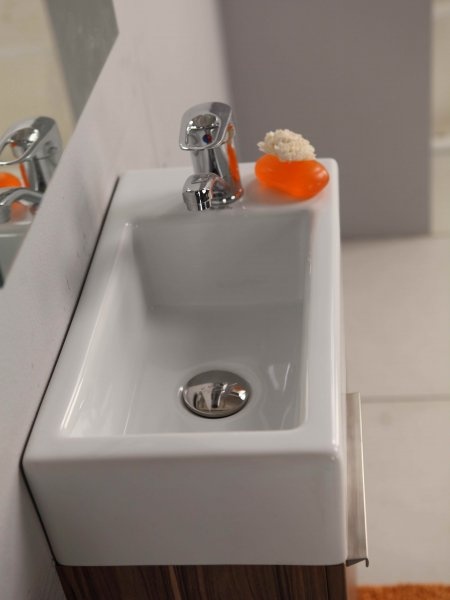 Монтаж тумбы универсален – с помощью ножек вы можете установить ее на пол либо повесить на стену. Мебель выполнена из текстурированного облицовочного материала. Небольшие размеры раковины компенсируется ее удобной глубиной, что предотвращает разбрызгивание воды.