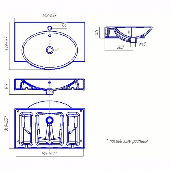 Ширина раковины: | 65 см |