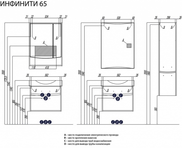 Набор мебели Акватон Инфинити 65 белый - Характеристики