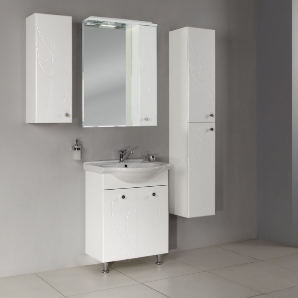 Мебель Акватон Лиана 60 выполнена в универсальном дизайне и по своим размерам подходит для небольших ванных комнат.