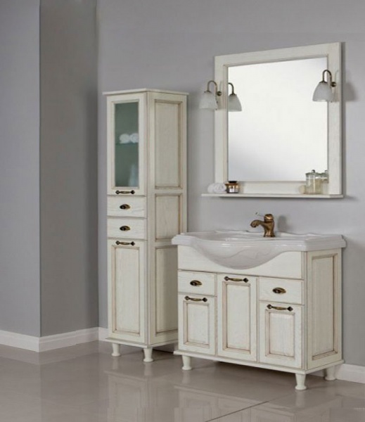 Дополнительно приобретается шкаф-колонна – если позволяет свободное место в ванной комнате. С таким набором без труда можно найти место для всех необходимых вещей. При этом, мебель служит долго и безукоризненно в течение долгих лет.
