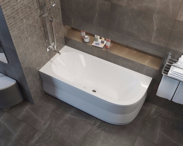 Асимметричная акриловая ванна Astra 165x80 L пристенной установки.