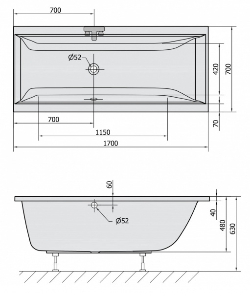 | Особенности: | ванны длина 170 см, ванны белые, ванны 170х70 |