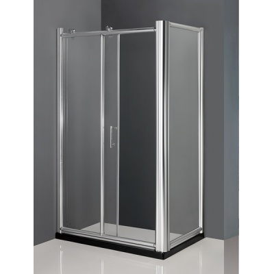 Душевое ограждение Luxe AM-B-5L прямоугольной формы с одной раздвижной дверью и двумя фиксированными дверьми.