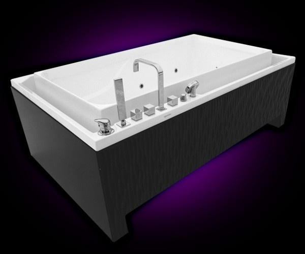 Ванны из немецкого акрилового листа долговечны и, что немаловажно, гигиеничные. Количество цветовых решений таких ванн велико – данная модель выполнена в черном обрамлении, вмещает в себя 420 литров и оборудована мощными форсунками для гидромассажа.