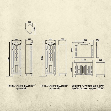 Напольный прямой пенал Atoll Александрия dorato левый - Описание