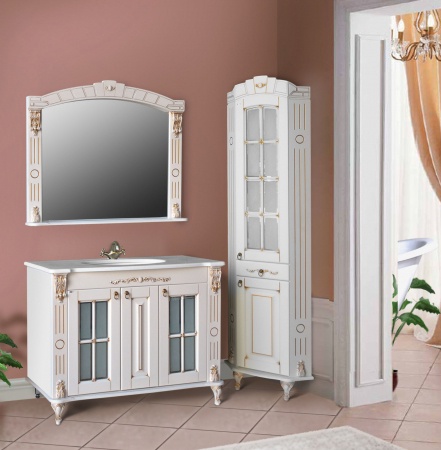 Напольный пенал Александрия dorato правый с двумя дверцам и ящиком для хранения мелочей. Модель декорирована витриной из матового стекла. Пенал подходит для набора мебели Александрия 100 dorato.