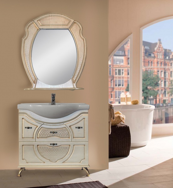 Комплект «Тулуза» выполнен в старинном дизайне с использованием технологии патинирования. Легкий декор, бронзовые ручки, мягкие формы вносят аристократизм и уравновешенность. Тумба под раковиной обеспечивает место для хранения необходимых предметов, нижний ящик оснащен встроенной корзиной для белья, что позволяет экономить площадь ванной комнаты и поддерживать чистоту. Комплект «Тулуза» сочетает в себе изыски современности и придает комнате очарование прошлого.