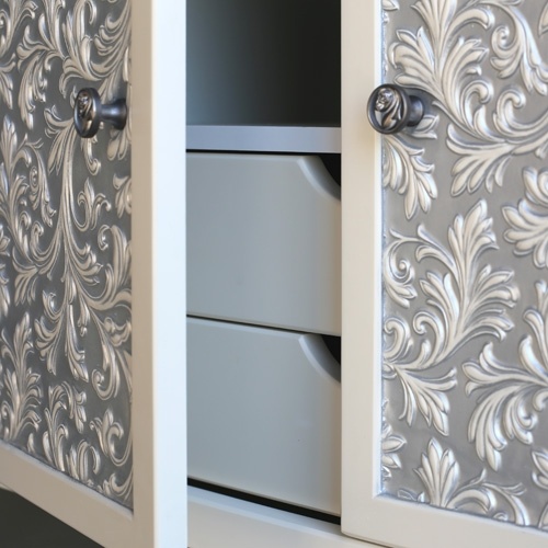 Мебель для ванной комнаты Атолл Валенсия - коллекция выпущена в 2013 году. Коллекция мебели для ванной комнаты Валенсия подчеркнута особыми фасадами всплошную покрытыми декоративными узорами. Классические формы тумбы и зеркала очень хорошо сосчитаются с оригинальным узором предоставляющий нам свежий и смелый образ. Тумба Валенсия не просто очень красивая но и довольно функциональна, внутри тумбы срыты два ящика, различные полки и отведены места для высоких предметов. Дополняет роскошный вид тумбы коллекции Валенсия столешница из искусственного камня. Декоративный фасад выполнен из крашеного МДФ.
