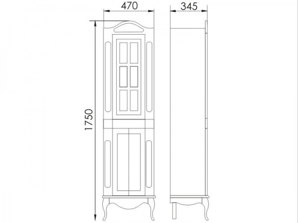Оригинальное патинирование придает фасаду роскошный облик настоящего дерева. Поскольку патинирование производится вручную, то каждое изделие, выполненное в этой технике, становится неповторимым. Пенал имеет простую напольную установку и компактные габариты.