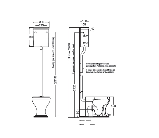 Бачок для унитаза с высокой трубой Azzurra CHARME CHA400/С bi - Характеристики