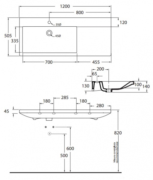 Подвесная раковина Azzurra Thin имеет приятную прямоугольную форму и оборудована просторной боковой столешницей.