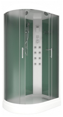 Это компактная угловая кабина с куполом, раздвижными дверцами из закаленного стекла и изящным, но прочным поддоном из акрила. Благоприятный микроклимат в ней регулируется с помощью удобной верхней подсветки и встроенной вентиляции.
