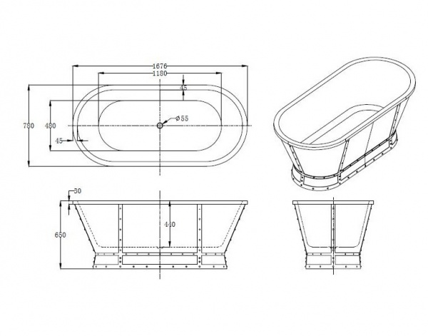 Акриловая ванна овальная BelBagno BB35, 1676x780x650 - Характеристики