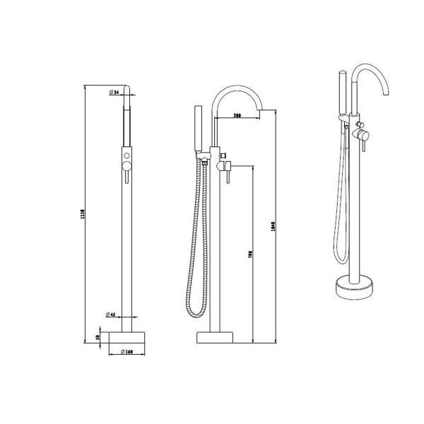 Напольный смеситель для ванны 26N313 Chrome из латуни с ручной лейкой и поворотным изливом.