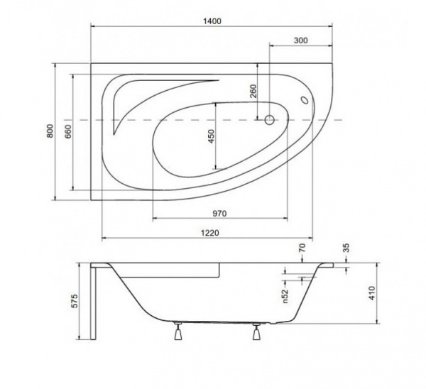 Ванна асимметричная Besco Cornea 140x80 L Ванна - Описание