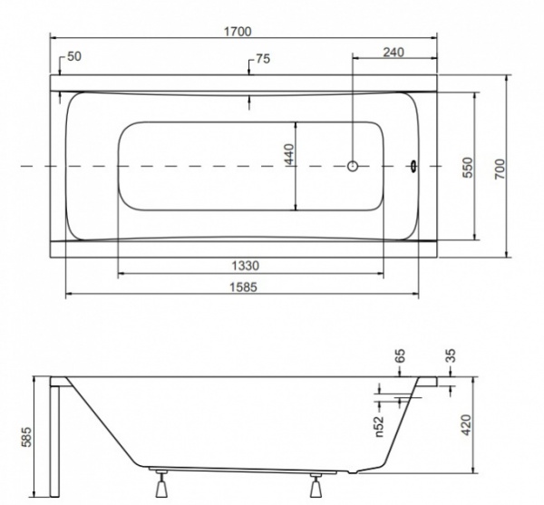 Прямоугольная акриловая ванна Besco Optima 170x70 см - Характеристики