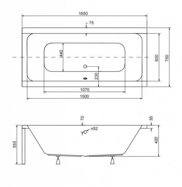 Прямоугольная акриловая ванна Besco Quadro 170x75 см - Характеристики