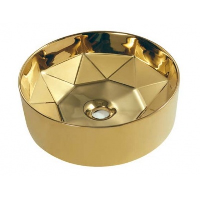 Накладная раковина 864 40х14 см золотого цвета с гранями внутри конструкции.