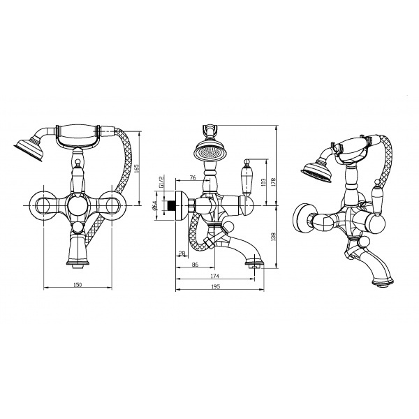 Смеситель для ванны Boheme Tradizionale Nero 253 (душевой комплект) - Характеристики