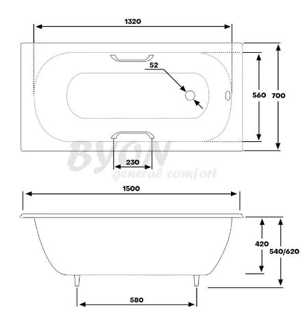 Чугунная ванна Byon 13 150x70 см с ручками - Характеристики