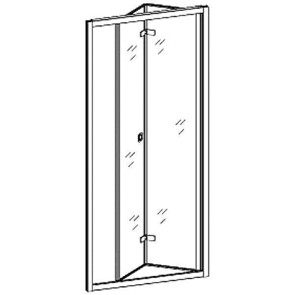 Душевая дверь складная D81 шириной 80 см. Состоит из двух частей. Изготовлена из закаленного травмобезопасного стекла с рисунком 5 мм. Профиль - полированный алюминий. Петли и ручки - стальные.