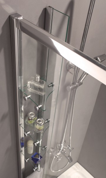 Форма четвери овала, выбранная для исполнения душевого уголка ANIMA RH2, равно как и раздвижные двери, позволяют максимально полно использовать занимаемое данной моделью пространство в ванной комнате. Следствием подобного решения является также и отказ от выступающих углов в конструкции, что сообщает интерьеру ванной спокойное, умиротворяющее настроение.