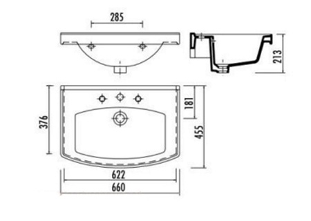 | Размеченные отверстия под смеситель: | 2, расположение в центре |