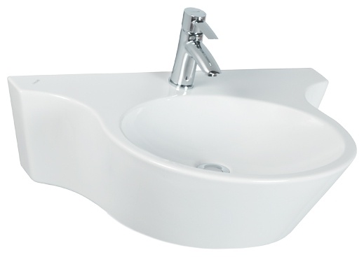Она предусматривает подвесную установку. Такие раковины позволят решить проблему выглядывающих частей сантехнических коммуникаций, скрыть все некрасивые трубы, которые нагружают гармоничность интерьера. Раковина изготовлена из высококачественного фаянса.