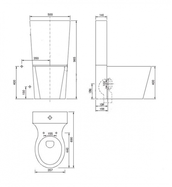 | Дополнительно приобретается: | бачок, сиденье и механизм слива |