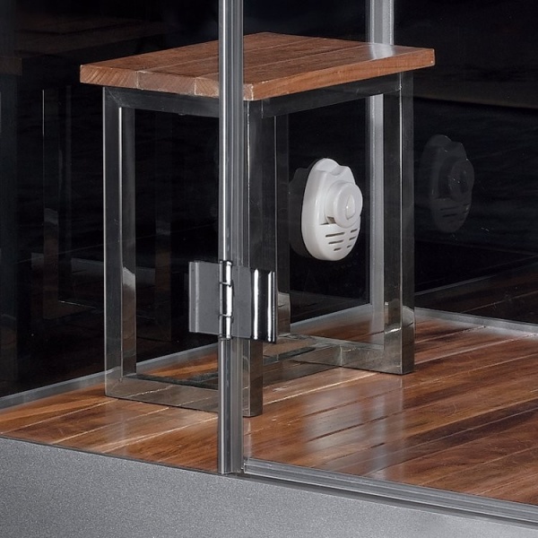 Душевая кабина оснащена сидением, имеет полочки для всех необходимых принадлежностей. Поддон изготовлен из акрила и имеет небольшую высоту. Дверцы модели – распашные и выполнены из закаленного стекла, устойчивого к любым ударам, сколам и царапинам.