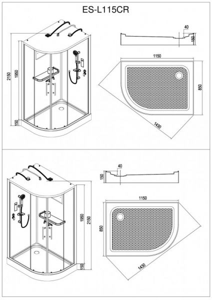 Кабина душевая с подсветкой Esbano ES-L 115 СR правый - Характеристики