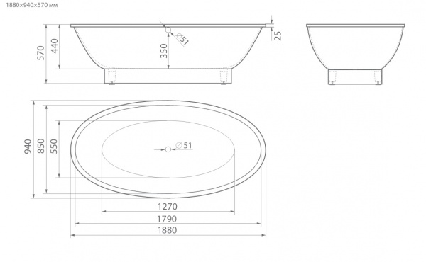 Мраморная ванна на подиуме Esse Jamba - Характеристики