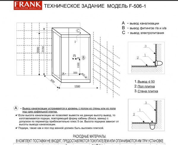 Душевая кабина пристенная Frank F506-1 - Инструкция