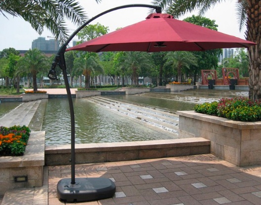 Зонт очень легкий, что позволяет перевозить его на велосипеде или в машине. Подходит для приусадебных участков и небольших кафе.