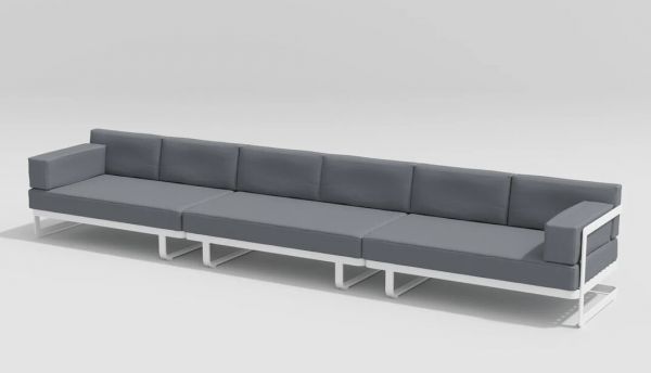 Материалы и цвета - каркас мебели выполнен из алюминия с порошковым покрытием белого цвета, подушки спинки и сидений изготовлены из специальной пены, пропускающей воду, обшиты уличной тканью, толщина подушек 12 см, столешница кофейного столика глянцевая, изготовлена из закаленного стекла толщиной 5 мм, с нанесением белого цвета с помощью шелкотрафаретной печати.
