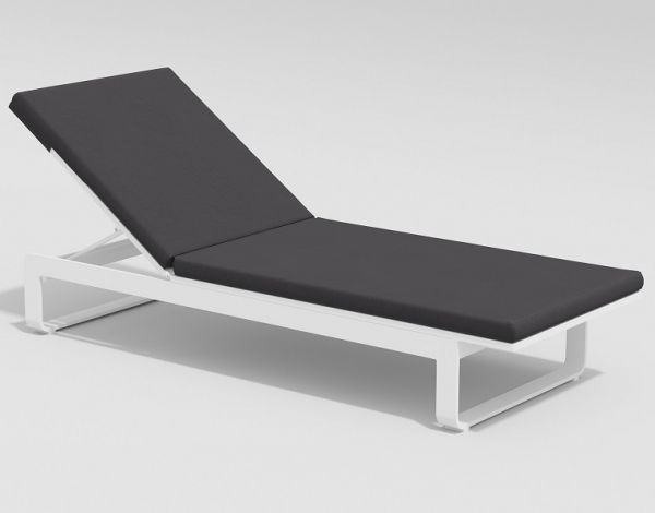 Каркас шезлонга Villinо выполнен выполнен из всесезонного алюминия с порошковым покрытием белого цвета, подушка обшита уличной тканью темно-серого цвета (А13805) с водоотталкивающей пропиткой, толщина подушки 6 см.