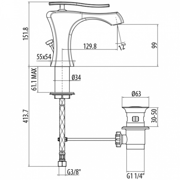 Cмеситель для раковины Gattoni Icarus, золото - Характеристики