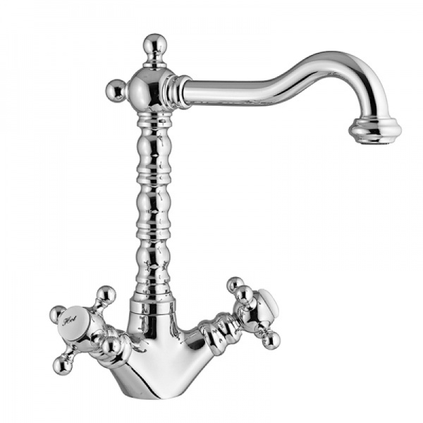 Модель имеет привычную многим двухвентильную конструкцию. Такие смесители удобнее, они смотрятся стильно и элегантно. Поэтому, как правило, решая купить смеситель для раковины, выбирают именно их – особенно для классической стилистики в интерьере.