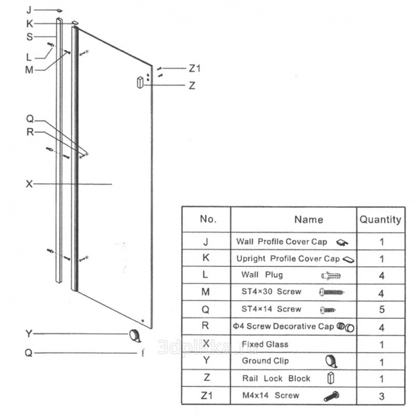 Стекло закаленное прозрачное, 0.8 см, профиль полированный хром, поддон приобретается отдельно.