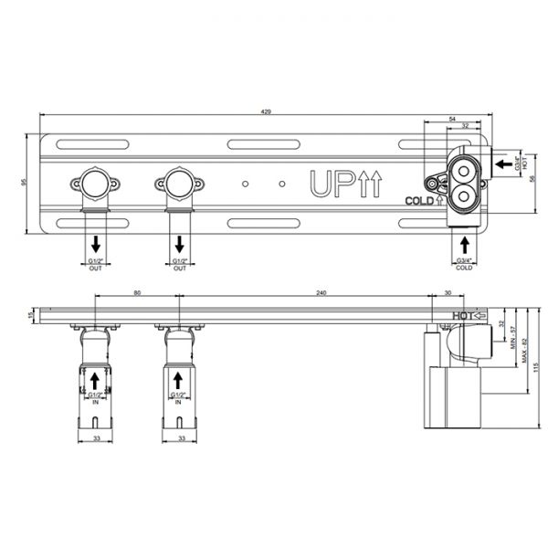Встраиваемые части для термостатического смесителя с полочкой, до 2 источников одновременно, 1/2" соединение.