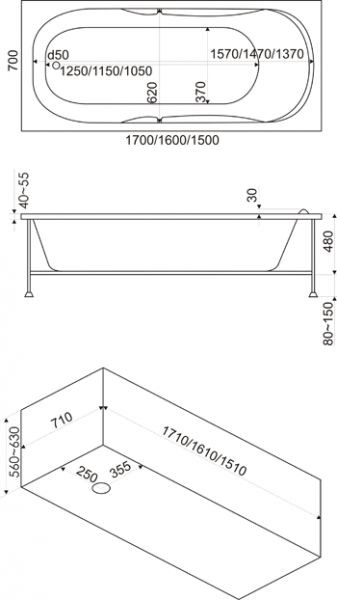 | Оптимально подходит как: | длина 170 см, белые, гидромассажные, отдельностоящие, 170х70 |