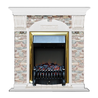Камин для дома и дачи Glenrich Арочный Грот цветной белый с топкой Fobos br