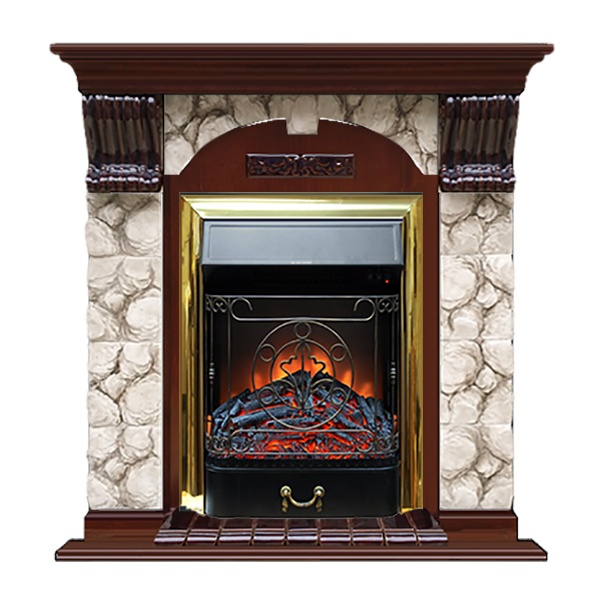 Камин для дома и дачи Glenrich Арочный Карелия красное дерево с топкой Majestic br