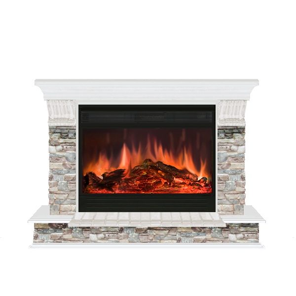 Каминокомплект Glenrich Панорама P 33 Грот цветной белая эмаль - Доставка